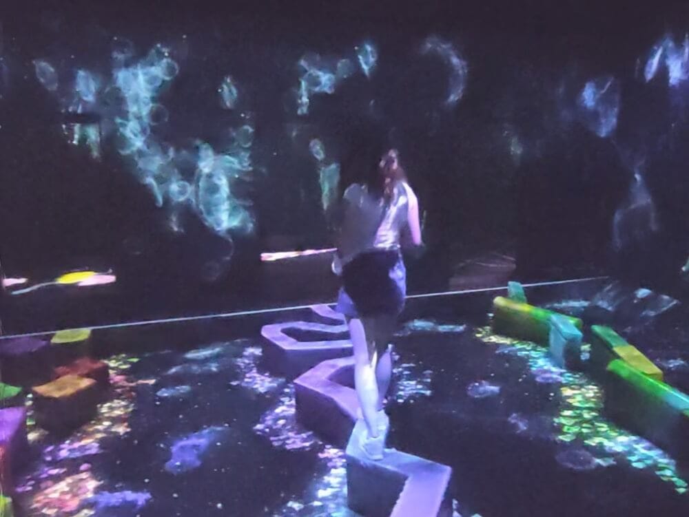 比較特別的還有「運動之森」,可以透過跑跳、行走與投影畫面產生互動,小孩也能玩得盡興。最後一區則是可以把自己畫的畫投影出來,非常有互動性。