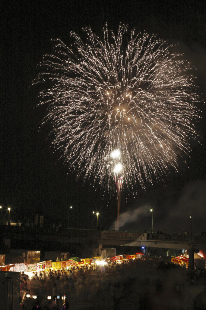 在福岡縣遠賀川、芦屋橋上游舉辦的煙火大會,是從大正時代延續至今的經典活動。約 5000 發煙火從河面上的台船連續施放,整個畫面非常有震撼感。大玉煙火和水中煙火也很有看點,現場周邊還有不少屋台可以逛。橫跨遠賀川兩岸、全長約 250 公尺的「尼加拉瀑布煙火」是一大亮點,能感受到濃厚的歷史與傳統氛圍。