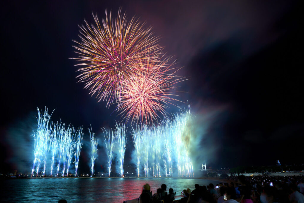 這是日本唯一一個隔著海峽、跨越縣境舉辦的煙火活動。福岡縣北九州市門司與山口縣下關兩岸合計施放約 1 萬 5000 發煙火。門司一側以大型煙火連發與音樂煙火為主,下關一側則有 1.5 尺大玉煙火與水中煙火等看點。2025 年延續去年的方式,會場周邊不設免費觀賞區,僅限購買以環境整備、保全與美化為目的的協贊票者進入觀覽區。