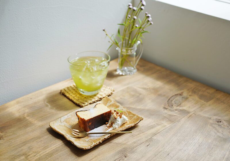 咖啡館菜單以蛋糕、嬉野茶、以及店家的原創配方咖啡為主。其中「柚子起司蛋糕」(600 日圓)很值得點,濃厚滑順的巴斯克起司蛋糕裡帶著柚子的清爽香氣,風味很有辨識度。這款也是「RAKUYA」的招牌甜點,由活躍於佐賀與長崎的主廚橋口聖負責菜單監修;柚子則使用佐賀市「MIFUKUAN」栽培的無農藥柚子。以冷萃方式沖泡的「嬉野冷茶」(500 日圓)帶著深厚的醇香,同時入口清爽乾淨,喝著會重新感受到綠茶本身的好喝與層次。