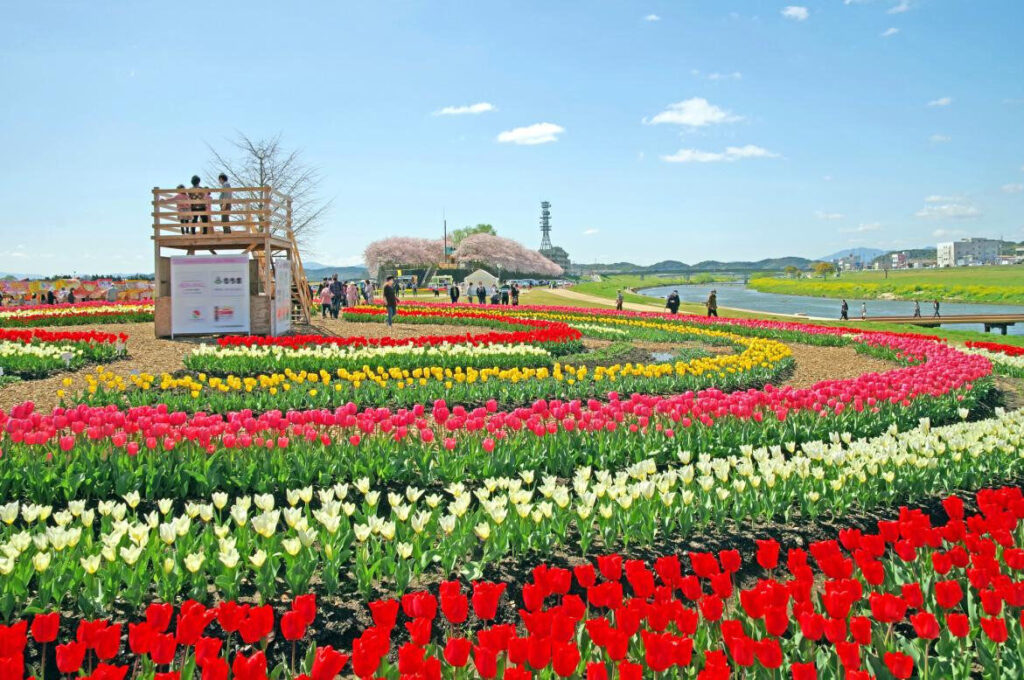 盛開的鬱金香由市民志工親手種植,花期通常落在3月下旬至4月初。期間的週末會舉辦活動,現場人潮熱絡,若時間剛好,也能看到與櫻花交織的景象。「直方鬱金香祭2026」將於2026年3月28日(週六)至4月5日(週日)舉行。夜間鬱金香活動僅於4月4日(週六)18:00~21:00開放。活動結束後仍可自由賞花,最佳觀賞期可延續至4月中旬。