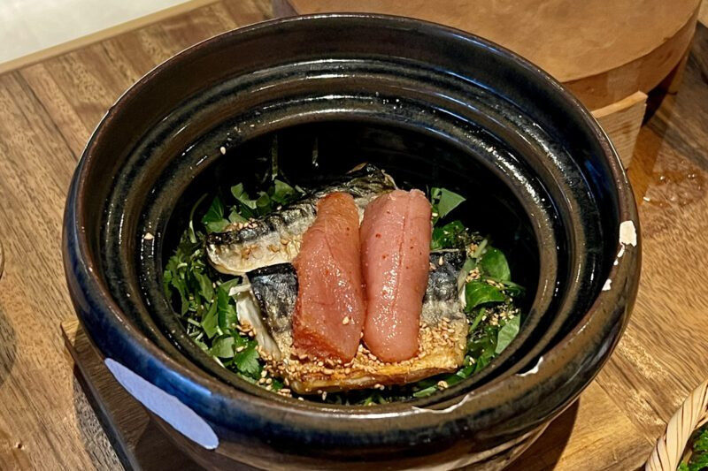 下面這個圖片是明太子鯖魚土鍋飯哦!一次性吃到福岡兩種特色食材的美味1土鍋飯!
