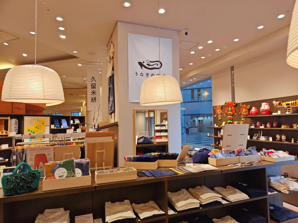 這家分店和「うなぎの寝床」在アクロス福岡的同一個空間裡,「うなぎの寝床」把傳統工藝結合現代設計,販賣各式各樣質感商品。兩個品牌都很重視地方創生,碰在一起產生不同的新火花。