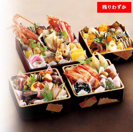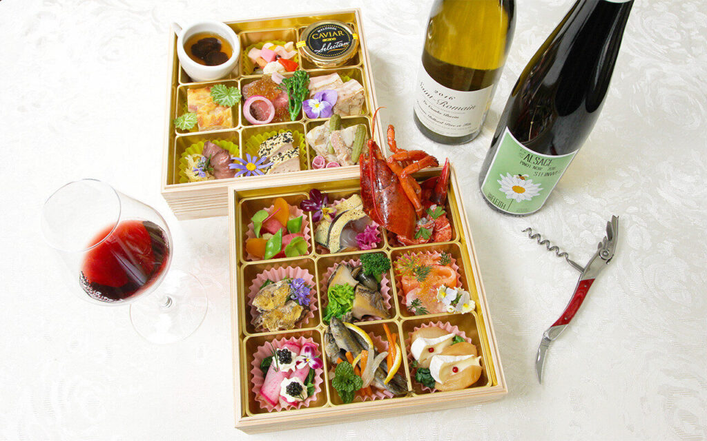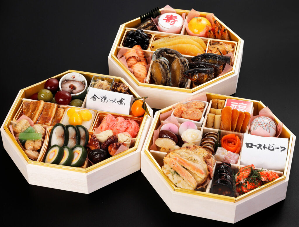 2026 年主打「和洋折衷三段重」,將日式傳統料理與西式前菜巧妙結合,層次分明、份量充實。國產黑毛和牛烤牛肉、烤龍蝦、干貝凍等豪華食材逐層呈現,視覺與味覺皆令人滿足。另備有少人數適合的一段重,以及個人份的「一人年菜」,可依家庭結構與生活型態自由選擇。支援店頭取貨與全國配送,無論自用或送禮都相當合適。