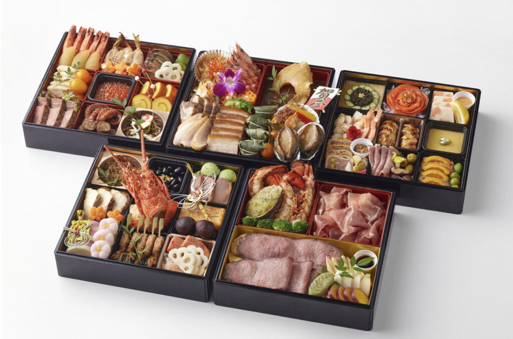 從適合5~6人的三段重、3~4人的二段重,到2~3人的一段重,能依照家庭人數與使用情境靈活選擇。日式御節中,數子、黑豆、鮑魚、龍蝦等高級食材華麗呈現,也有融入西式與中式元素的款式,風味層次更加多元。