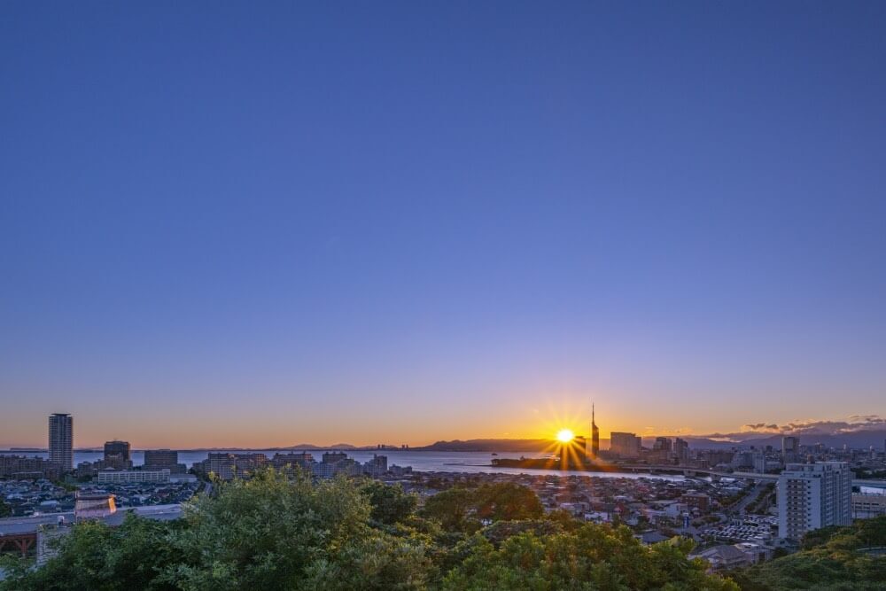 可欣賞 360 度全景視野,將海之中道、博多灣以及市區景色一覽無遺,是觀賞初日出的理想地點。元旦當天人潮眾多,建議提早前往。