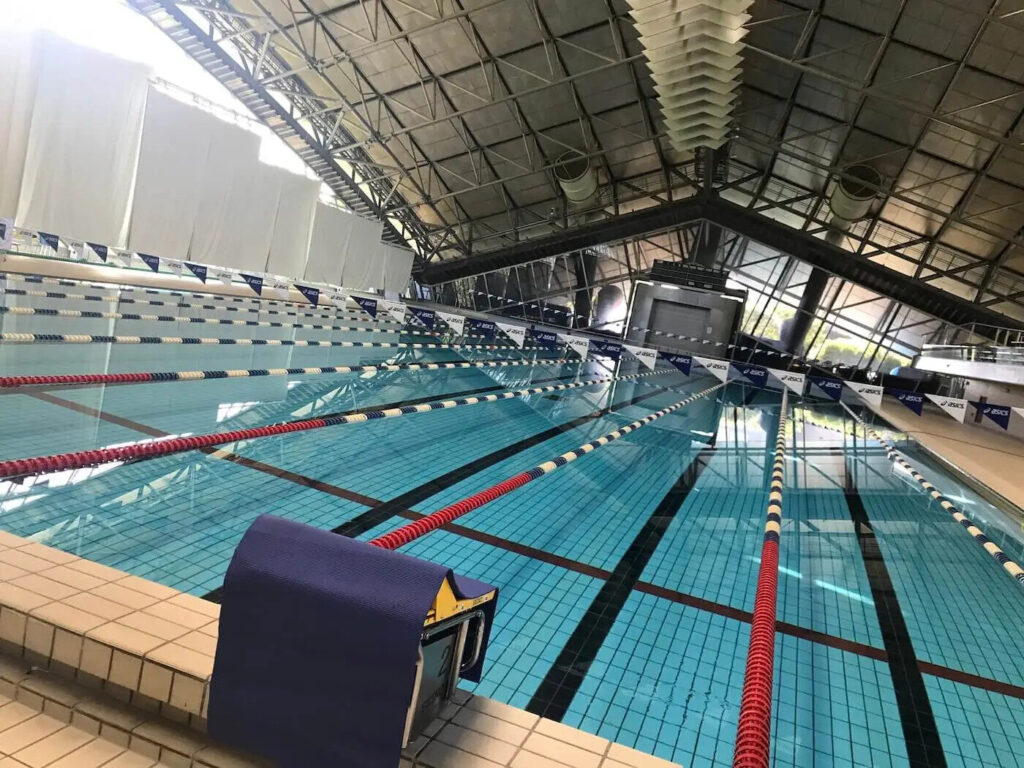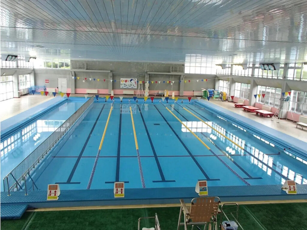 ・室內泳池:9:00〜21:00 主泳池:溫水 50m×10 泳道*平時分割為水深 3.3m×25m 與水深 1.2m×25m 副泳池:溫水 25m×7 泳道(水深:平日 1.1m、週末與夏季 1.0m) 幼兒泳池:水深 0.3〜0.35m