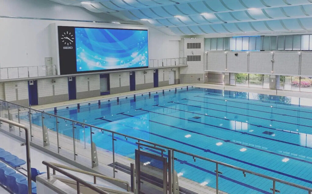 ・溫水主泳池:50m×8 泳道(水深 2〜2.2m)、25m×8 泳道(水深 1〜1.4m)*50m 泳道一般開放僅限 7〜9 月