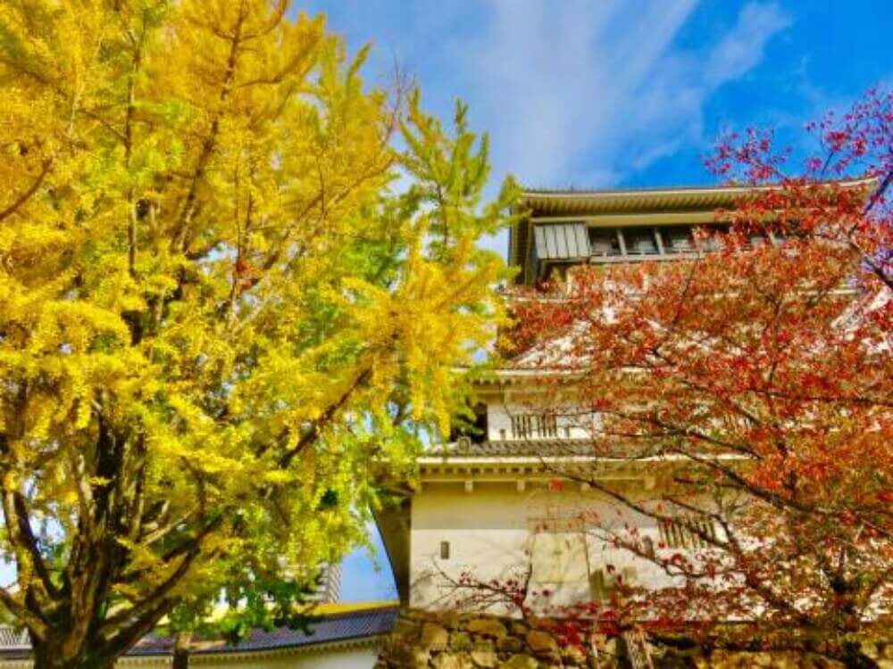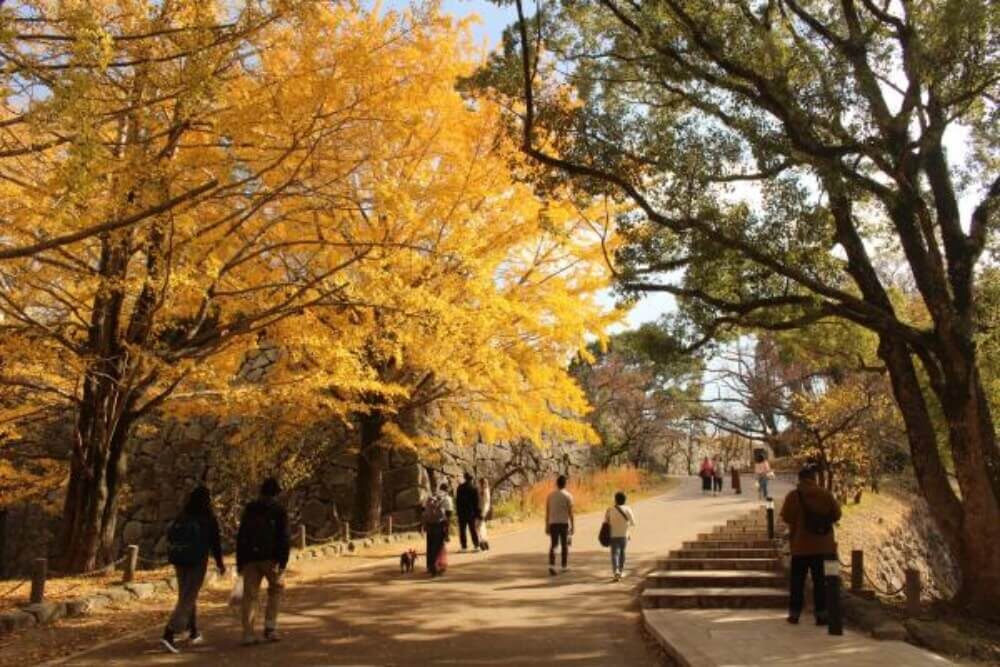 舞鶴公園中通往天守台的主要入口及本丸區域皆種有銀杏樹。每到秋季,從天守台俯瞰,滿園金黃與繽紛秋色交織,景色格外迷人。