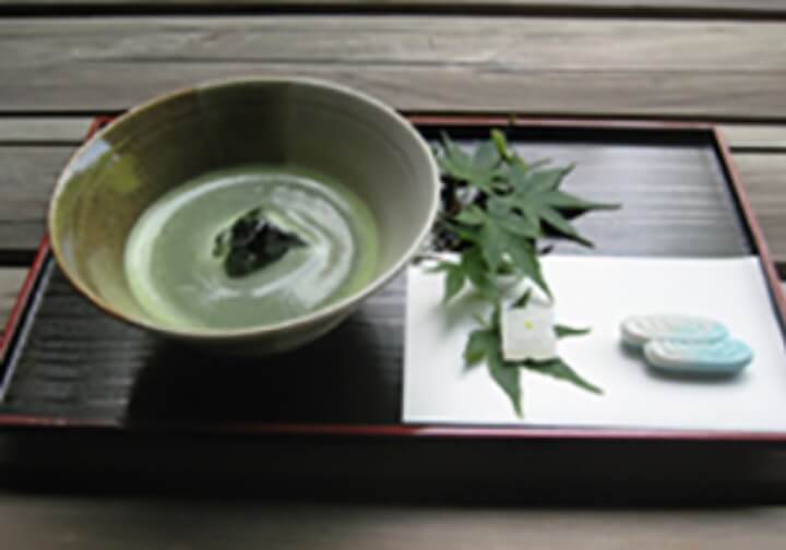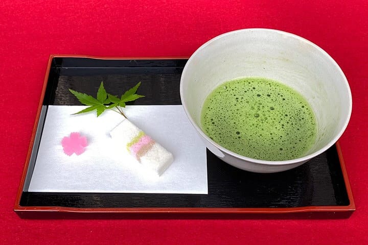 而這裡也有提供茶點套餐。於夏季時提供冰鎮抹茶,其他季節則提供一般的熱抹茶。(每份500日圓,含季節和菓子)