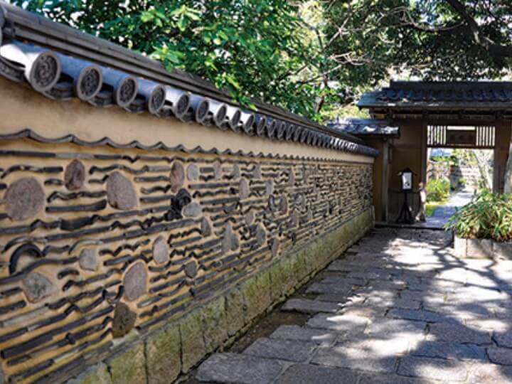 西側則是以白壁建築與大濠公園的池作為借景設計的枯山水。