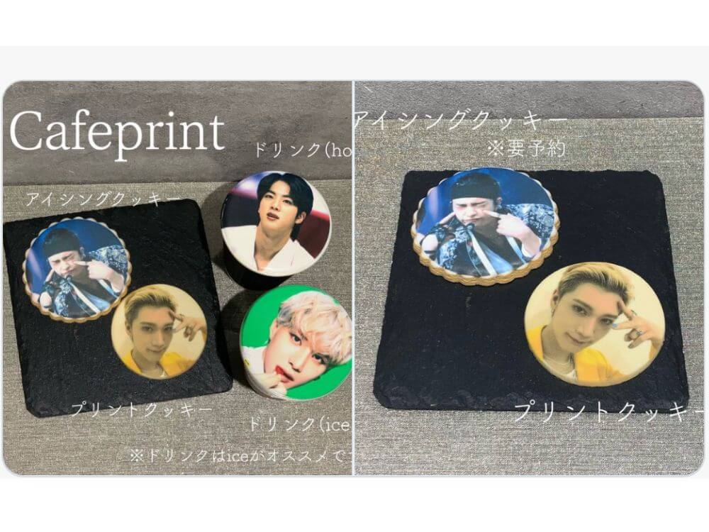 SPING☆CAFE最有名的是可以高清印刷偶像的照片到食物上,包含拿鐵、餅乾跟蛋糕,也會在偶像生日時舉辦活動。高清印刷的預約與相關訊息請至官方IG或X上聯絡和查詢。