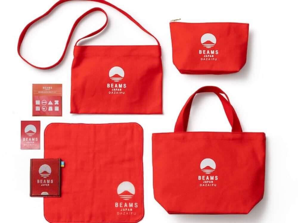 這次店內推出多款限定商品,其中作為主視覺主打的托特包、午餐袋與相關小物,都以供奉「學問之神」菅原道真公、他所鍾愛的梅花為靈感,並選用象徵「紅梅」的色調作為主視覺。
