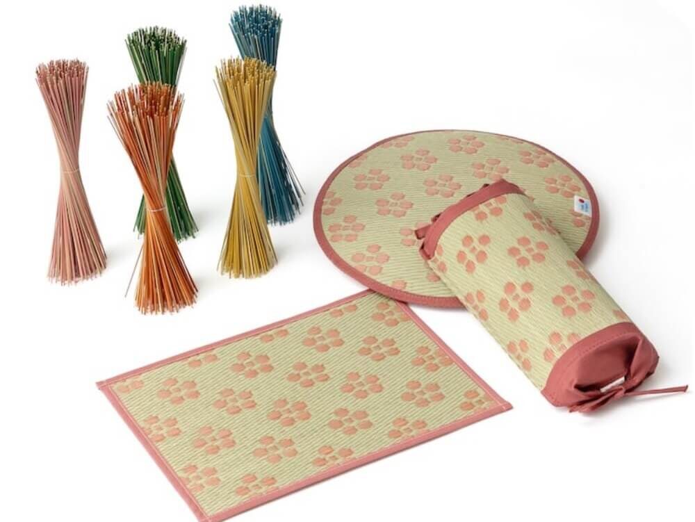 從事藺草製品與榻榻米製造販售的IKEHIKO所推出的雜貨,則織入了象徵梅花的圖樣。