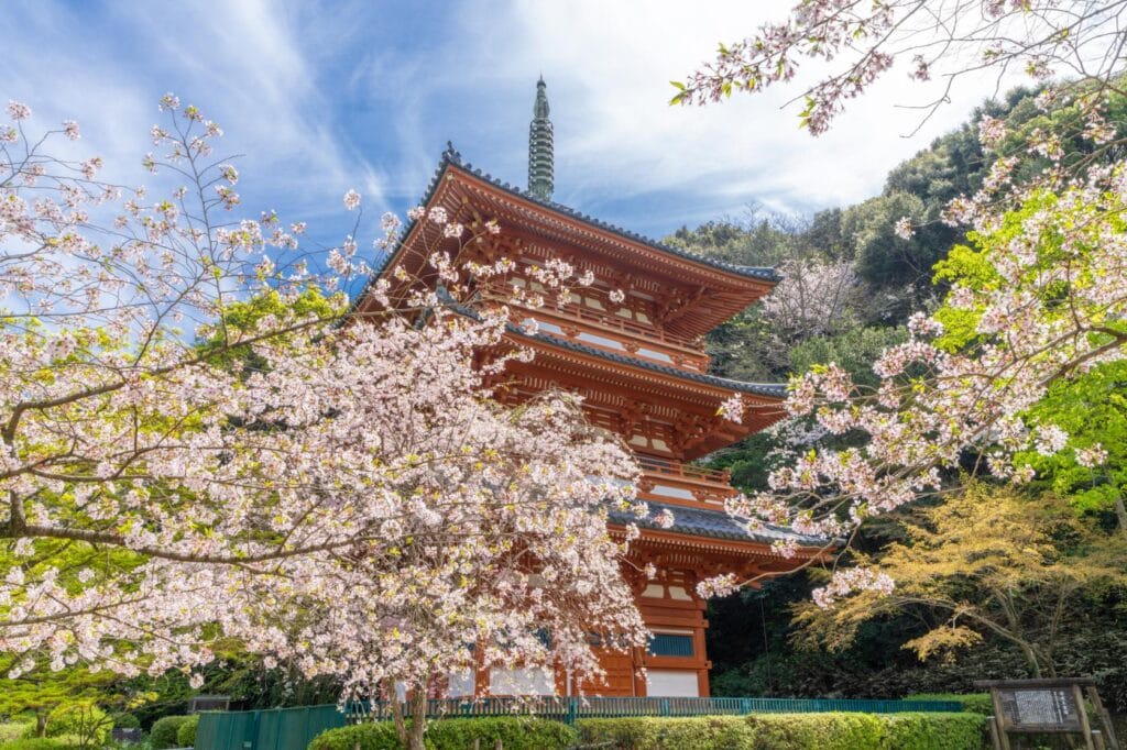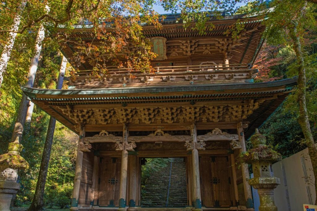 這座寺院由天台宗的開山鼻祖、平安時代(794~1185年)初期的日本佛教僧侶「最澄」所創立,1200多年以來一直受到信者的敬仰。寺廟依山而建,環境清幽,與城市的喧囂形成鮮明對比。寺內有供奉著佛像的「千體佛堂」,以及被指定為縣重要文化財產的「三重塔」和「山門」等諸多看點。