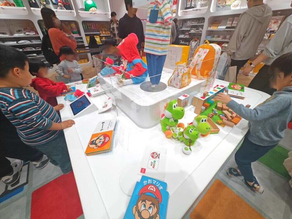 福岡直營店還有專為小朋友設計的商品系列「My Mario」專區。販賣多種小朋友商品,連地板上都畫有方塊等瑪利歐元素,充滿遊戲世界的氛圍。