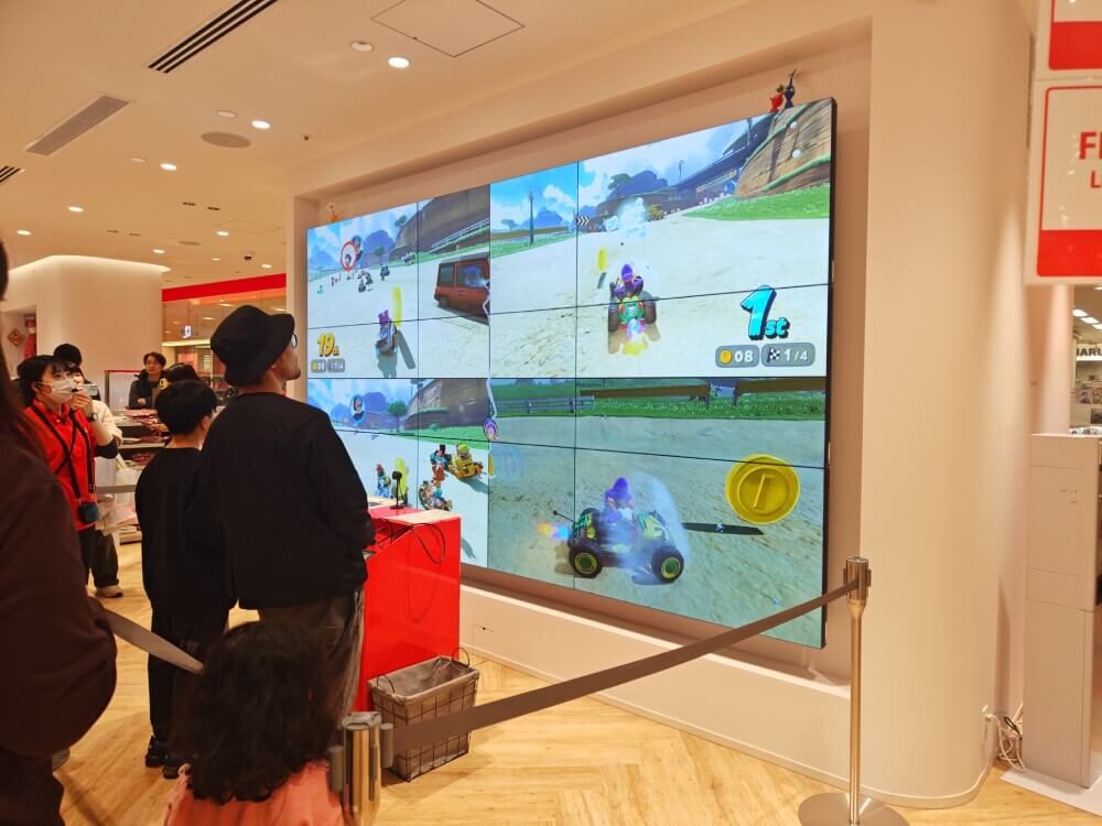 店內也設有Nintendo Switch 2 的試玩區。這次看到大家試玩的遊戲是《瑪利歐賽車 World》,可以排隊進行試玩,一旁是主持人負責炒熱氣氛,非常歡樂。
