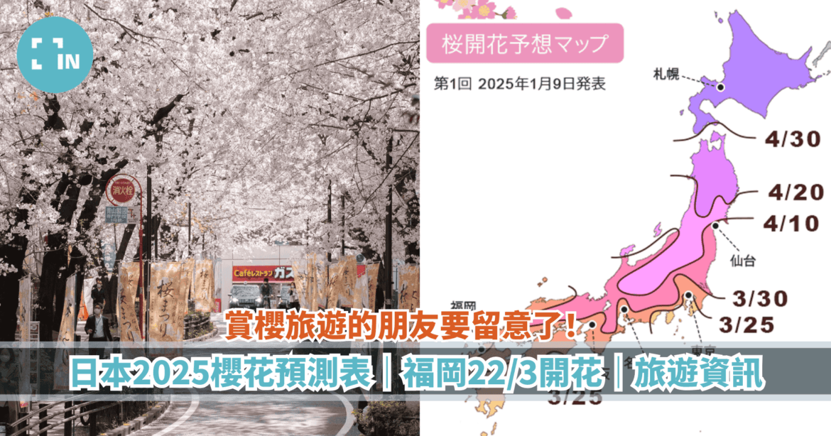 日前,日本氣象株式會社發布了第1個預測櫻花開花到盛開的日期。如果計劃今年到福岡,或日本各地賞櫻旅遊的朋友要留意了!日本氣象株式會社估計了從北海道到鹿兒島大約1000個櫻花觀賞地的染井吉野櫻樹的開花和盛開日期,並將會及時更新,下次更新時間為23/1。