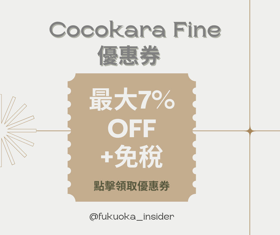 優惠券 Cocokara Fine優惠券!免稅+最大7%OFF by Nina 2025 年 5 月 15 日 written by Nina 2025 年 5 月 15 日 435 Cocokara Fine的公司在2021年與松本清合併,所以裡面也會販賣松本清自家的品牌商品。裡面的販賣品項除了藥品之外,以美妝產品比例較高。 0 FacebookWhatsappLINEEmail Nina 台灣出身, 2017年來到日本,2019年搬到福岡後就一直住下來了! 非常喜歡福岡,希望可以分享更多相關資訊給大家~ previous post 松本清優惠券!免稅+最大7%OFF next post Bic Camera優惠券!免稅+最大7%OFF You may also like COSMOS科摩思優惠券!免稅+最大9%OFF YAMADA山田電機優惠券!免稅+最大7%OFF Snow Peak優惠券!免稅+最大7%OFF,消費10,000円~29,999円贈送精美贈品 愛電王優惠券!免稅+最大7%OFF BRIEFING優惠券!最大10%OFF JUNGLE優惠券!免稅+最大5%OFF 洋服的青山優惠券!免稅+最大10%OFF 唐吉軻德優惠券!免稅+最大7%OFF 大賀藥局優惠券!每滿10,000円即減500円 鶴羽藥妝優惠券!免稅+最大7%OFF
