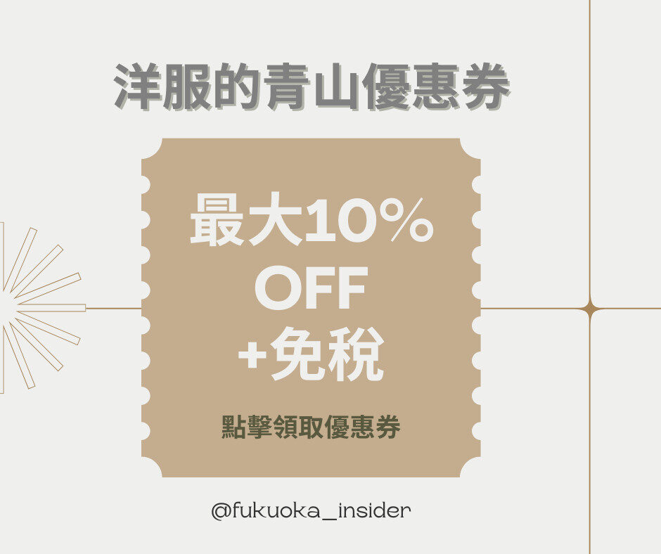 優惠券 洋服的青山優惠券!免稅+最大10%OFF by Nina 2025 年 5 月 20 日 written by Nina 2025 年 5 月 20 日 448 青山商事自創業以來,始終秉持「提供更好的商品、更實惠的價格,透過服飾銷售來貢獻社會」的經營理念,以男士服飾為中心,積極拓展事業領域,邁向全方位的零售與服務事業。 0 FacebookWhatsappLINEEmail Nina 台灣出身, 2017年來到日本,2019年搬到福岡後就一直住下來了! 非常喜歡福岡,希望可以分享更多相關資訊給大家~ previous post 唐吉軻德優惠券!免稅+最大7%OFF next post JUNGLE優惠券!免稅+最大5%OFF You may also like COSMOS科摩思優惠券!免稅+最大9%OFF YAMADA山田電機優惠券!免稅+最大7%OFF Snow Peak優惠券!免稅+最大7%OFF,消費10,000円~29,999円贈送精美贈品 愛電王優惠券!免稅+最大7%OFF BRIEFING優惠券!最大10%OFF JUNGLE優惠券!免稅+最大5%OFF 唐吉軻德優惠券!免稅+最大7%OFF 大賀藥局優惠券!每滿10,000円即減500円 鶴羽藥妝優惠券!免稅+最大7%OFF Sundrug(尚都樂客)優惠券!免稅+最大7%OFF