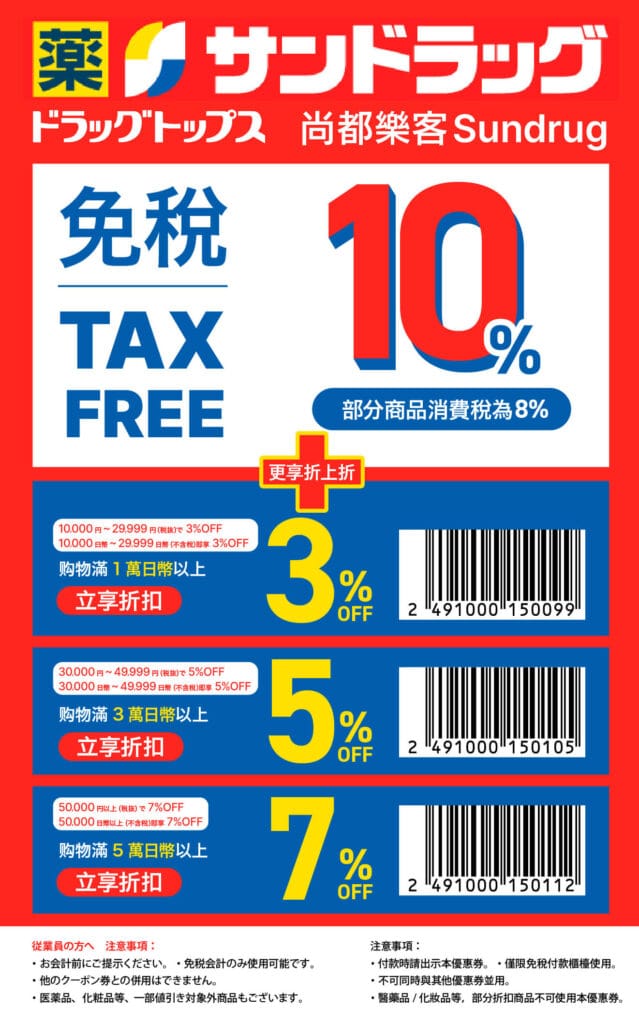 優惠券 Sundrug(尚都樂客)優惠券!免稅+最大7%OFF by Nina 2025 年 5 月 20 日 written by Nina 2025 年 5 月 20 日 449 尚都樂客也是相當平價的藥妝店,店裡也時常會有各種打折活動。主要的基本款都有販賣,也是許多觀光客來日本掃貨的好選擇。 0 FacebookWhatsappLINEEmail Nina 台灣出身, 2017年來到日本,2019年搬到福岡後就一直住下來了! 非常喜歡福岡,希望可以分享更多相關資訊給大家~ previous post Bic Camera優惠券!免稅+最大7%OFF next post 鶴羽藥妝優惠券!免稅+最大7%OFF You may also like COSMOS科摩思優惠券!免稅+最大9%OFF YAMADA山田電機優惠券!免稅+最大7%OFF Snow Peak優惠券!免稅+最大7%OFF,消費10,000円~29,999円贈送精美贈品 愛電王優惠券!免稅+最大7%OFF BRIEFING優惠券!最大10%OFF JUNGLE優惠券!免稅+最大5%OFF 洋服的青山優惠券!免稅+最大10%OFF 唐吉軻德優惠券!免稅+最大7%OFF 大賀藥局優惠券!每滿10,000円即減500円 鶴羽藥妝優惠券!免稅+最大7%OFF