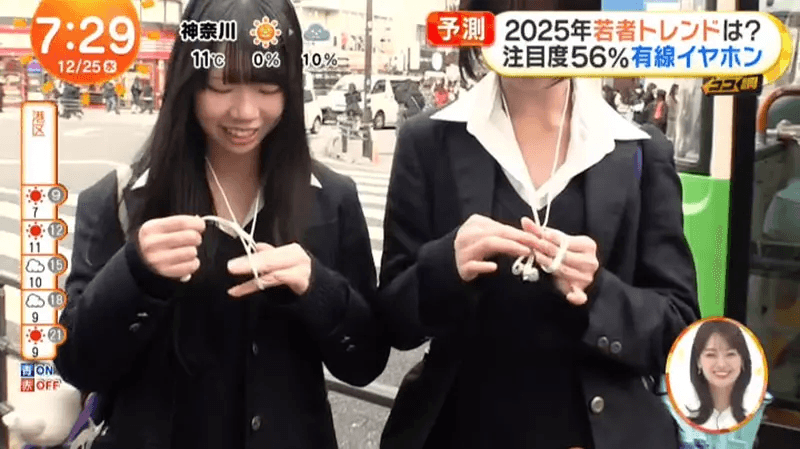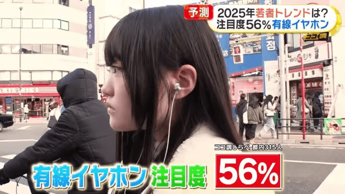 日本富士電視台的晨間新聞節目 “めざましテレビ” 數月前聚焦2025年年輕人流行趨勢。節目通過問卷調查的方式,了解年輕人對未來潮流的關注點。調查結果顯示,有56%的受訪者表示對 “old school” 有線耳機情有獨鍾,並列舉了以下幾個原因: