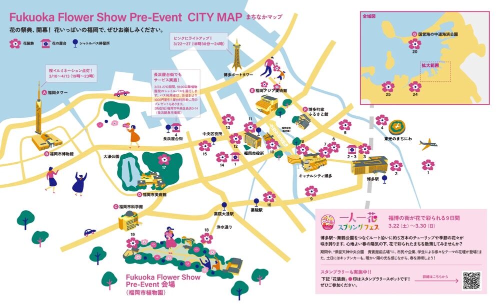 3.22-3.26在福岡市植物園有舉辦Fukuoka Flower Show 哦,主題是Flowers in Fashion! 會有包含花園設計競賽,珍惜花朵品鑒以及福岡本地的熱門商鋪和餐廳的參與,以及在福岡各處的“花花世界”,快來在春日暖陽裡體會福岡燦爛的花朵吧!