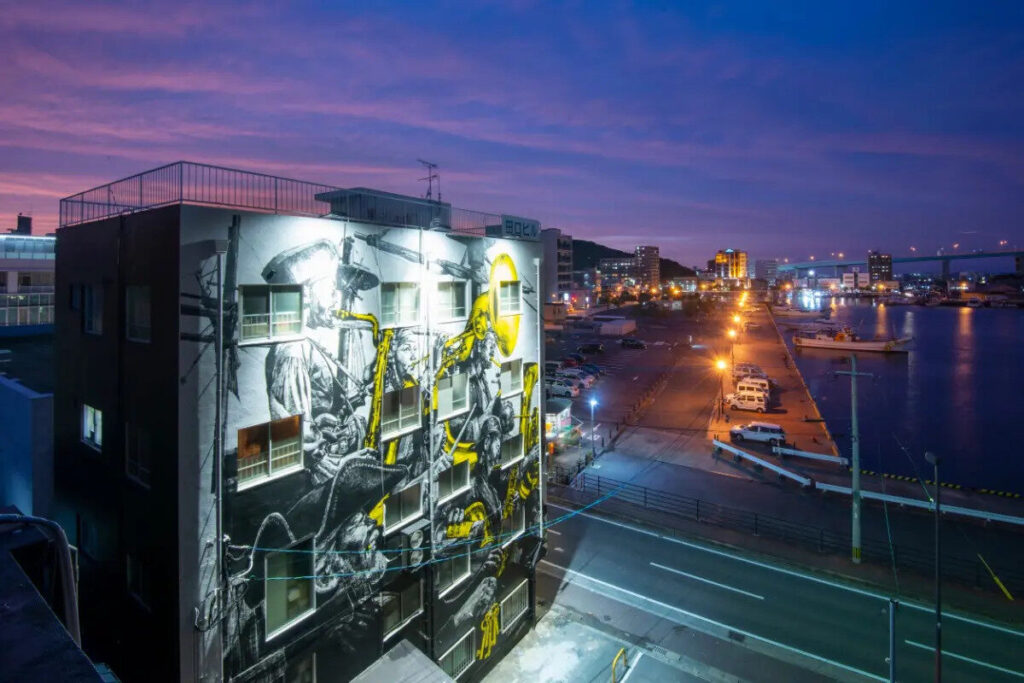 從大濠公園步行可達的西公園與大手門一帶,也分布著幾處商店街。通往以櫻花聞名的西公園參道沿線是西公園商店街,除了受歡迎的餐廳與甜點店,也有在地人日常會去的錢湯。隔著舞鶴公園護城河、位於北側一帶的是大手門商店街,這裡有老字號超市等生活店家,同時也散落著深受饕客喜愛的餐飲店。若願意再多走一點,西公園後方臨港的「みなと銀座商店街」也很值得順路安排,除了老牌麵包店,還有 Live House 等空間,沿街建築外牆也能看到相當出色的壁畫作品。