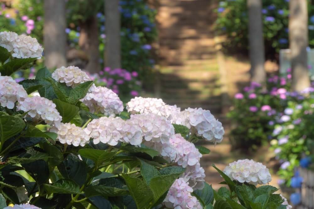 有「繡球花寺」之稱的千光寺,每年花季期間會舉辦「繡球花祭」,約7,000株繡球花盛放,景色壯觀。