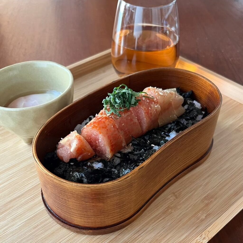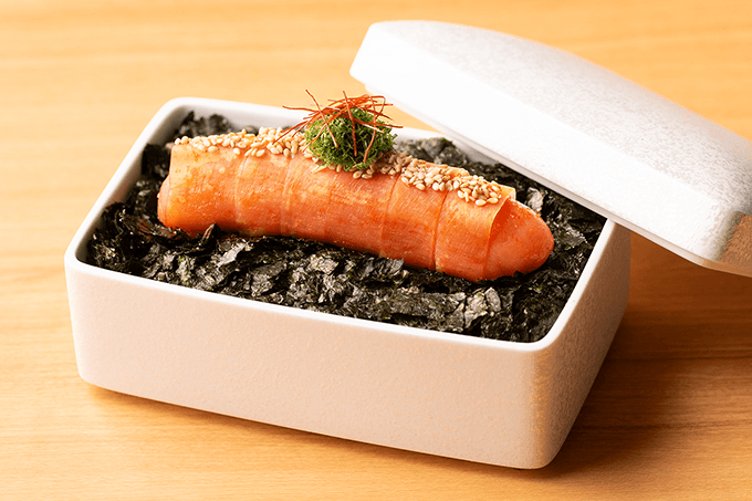 與店名相同的博多名產「博多明太重」,是花費時間充分醃製的昆布包裹著原條明太子,再搭配特製醬汁和米飯一起吃,使明太子的風味更加豐富,美味倍增。這種美食將福岡的傳統口味傳達到現代,明太子的濃鬱辣味與醬汁的甜鹹相得益彰,與米飯的組合帶出簡單又停不下來的美味,堪稱絕配!