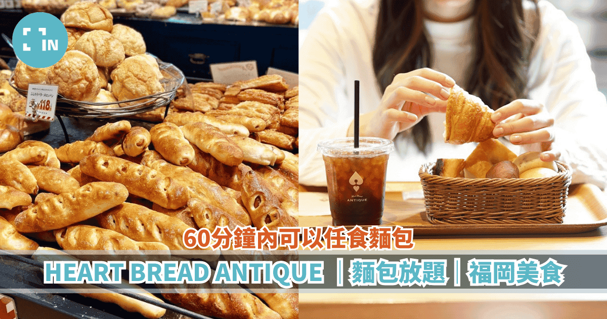 HEART BREAD ANTIQUE 是一家在日本各地擁有分店的知名麵包店,在福岡也設有分店,福岡天神分店最有名的就是「麵包放題」!每天分開2個時段提供麵包放題,60分鐘內可以任食麵包,而且還包括飲料無限暢飲!如果是麵包控的朋友,這是一個非常棒的體驗喔~