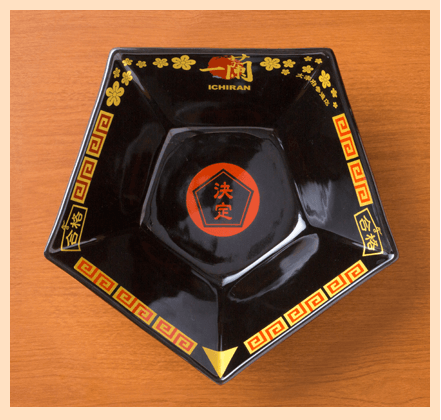 首先引人注目的是五角形的碗。「合格」和「五角」發音相似,因此特別製作的碗上,繪有太宰府的象徵梅花,以及祈求考試順利的繪馬,碗底則刻有強而有力的「決定」二字。