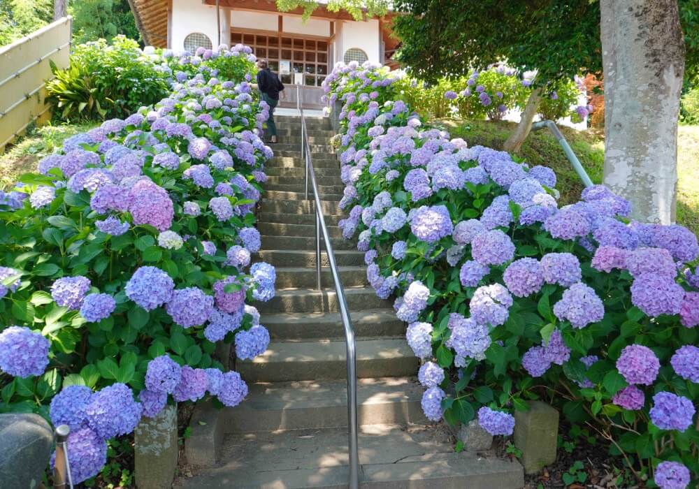 寺方希望這裡的繡球花能成為寺廟的特色,因此持續進行植栽與維護。每年約在6月左右,種植在石階兩側的繡球花會進入最佳觀賞期。