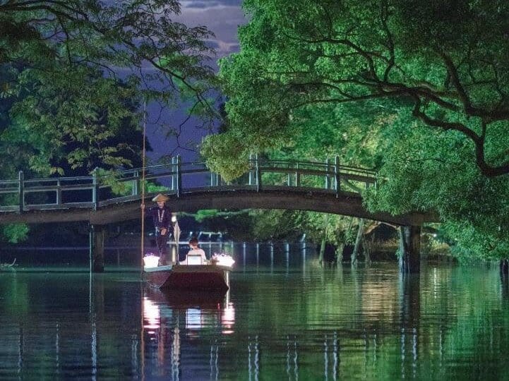 於每年的11/1~3,會在船上掛上燈籠,並以古式遊舟的方式乘載客人(需預約),河上會設置臨時舞台,觀光客們可以一邊享受餐點,一邊觀賞表演。