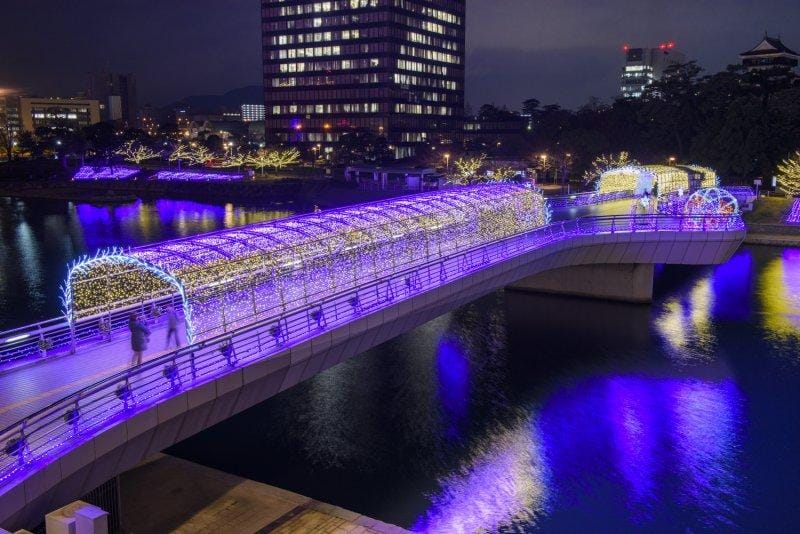 北九州市現正舉辦的冬季活動「KOKURA CHRISTMAS MARKET & CASTLE」,活動結合歷史與現代的光之隧道為特色,將小倉城、紫川夜景、小倉燈光秀等同期舉辦的活動串連在一起,展現出北九州市獨有的冬季景觀。這個聯合活動旨在為城市注入新的活力,為冬季打造出獨特的風景。「KOKURA CHRISTMAS MARKET & CASTLE」活動希望透過與福岡舉辦的「クリスマスアドベント」合作,成為世界一流的聖誕活動。在小倉城的背景下,鷗外橋化身成聖誕地標「光之隧道」,營造出迷人的景觀,連接著「紫川親水廣場」及「船場廣場」聖誕市集,讓遊客感受北九州市聖誕市集的魅力。