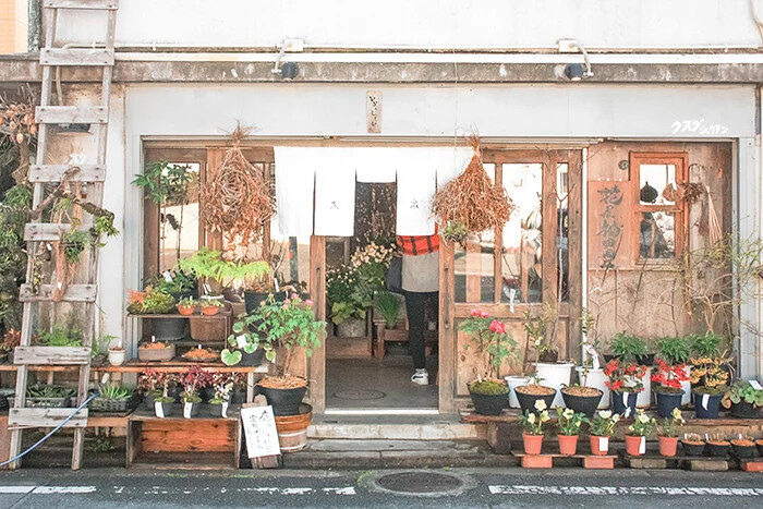 這是一間散發著濃濃懷舊氣息的花店。讓人彷彿來到鄉下、聯想到日本舊時美好原風景的『楠田商店』,樸實又令人安心的店面風格,第一眼就讓人放鬆下來。店門口擺滿了山野草與各式盆栽,隨著四季更迭展現不同表情。掀開手寫標註「二十四節氣」的暖簾走進店內前,總會不自覺停下腳步,深呼吸一口氣,重新感受此刻的季節氣息。這樣細膩而溫柔的小巧思,正是在忙碌日常中,悄悄喚回日本文化一部分、感受四季流轉的那份初心。