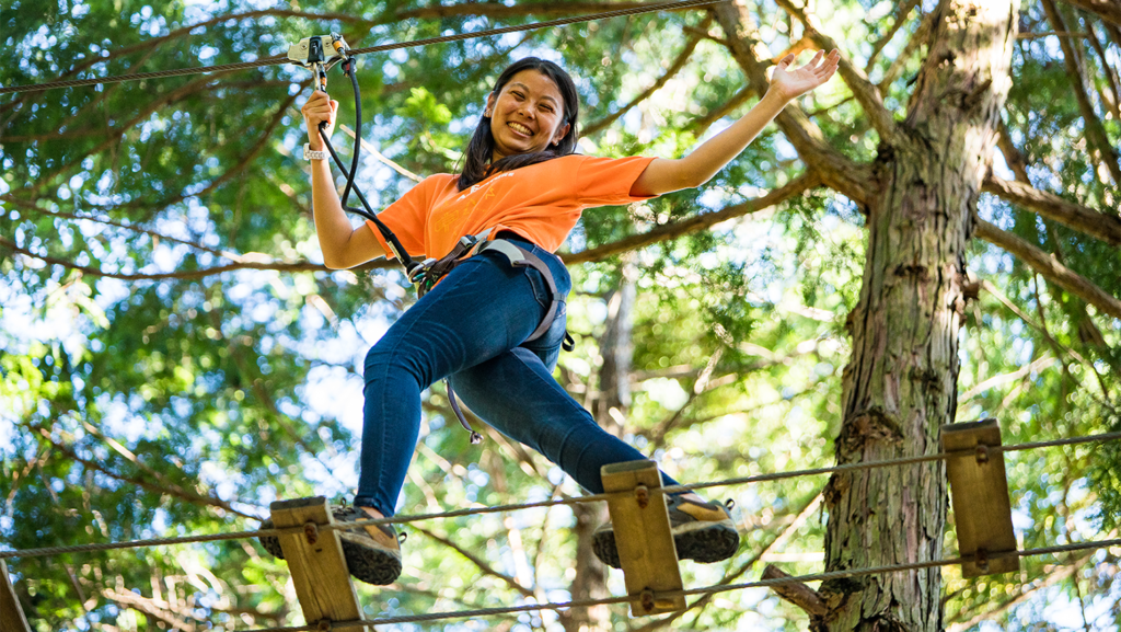 - 滑索路線: 以滑索為主的體驗,能在森林裡穿梭或從樹上滑下,是此路線的特色。適合身高140cm以上、體重100kg以下的遊客。