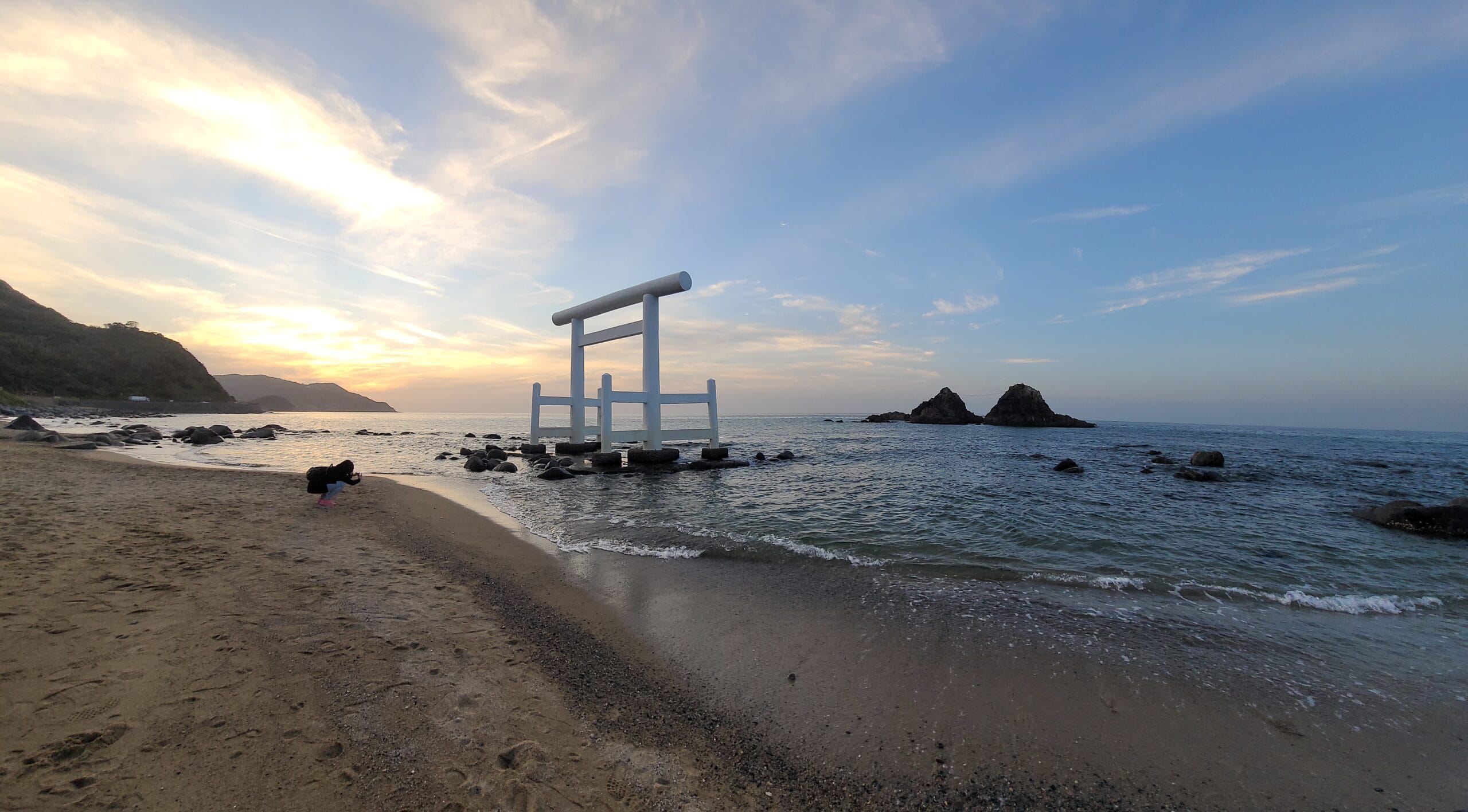 這裡曾獲選「日本海灘百選」、「日本夕陽百選」。 而櫻井神社的白色鳥居矗立在大海中,背後則是夫婦岩的景象十分特別。尤其是傍晚的「藍色時刻」以及夕陽時分特別美麗。