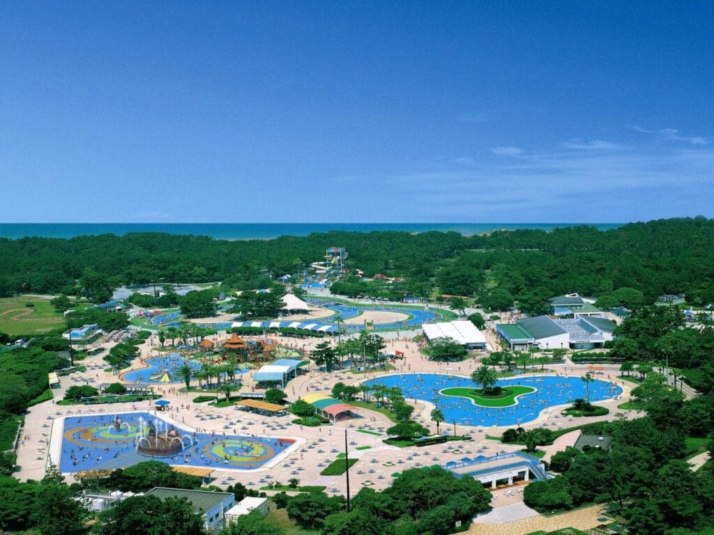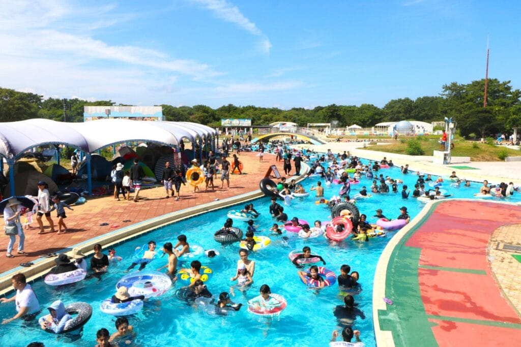 海中道陽光泳池是位於福岡市海中道海濱公園內的大型戶外泳池,是夏季消暑的熱門去處。泳池佔地廣闊,擁有六個不同主題的泳池,包括刺激的滑水道、適合兒童的淺水池、以及長度300公尺的悠閒漂浮流水池,滿足不同年齡層的需求,非常適合家庭前往。